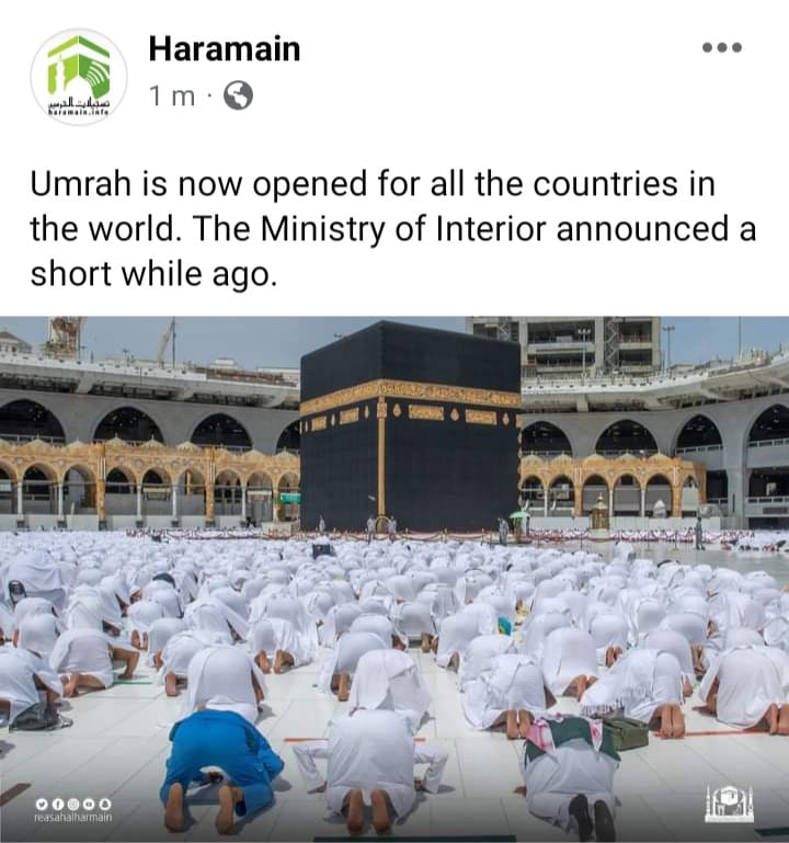 أشاد معالي الرئيس العام لشؤون المسجد الحرام والمسجد النبوي الشيخ الدكتور عبدالرحمن بن عبدالعزيز السديس بقرار رفع الإجراءات الاحترازية وإلغاء تطبيق التباعد الجسدي في الحرمين الشريفين مع الإلزام بارتداء الكمامات وفق التويتر الرسمي للرئاسة العامة لشؤون المسجد الحرام والمسجد النبوي