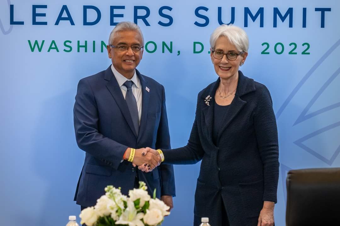 خلال اجتماع مع رئيس الوزراء برافيند جوغنوث على هامش قمة قادة الولايات المتحدة وأفريقيا في واشنطن ، أعادت نائبة وزير الخارجية ويندي شيرمان التأكيد على قوة وأهمية العلاقة الثنائية بين الولايات المتحدة و جمهورية موريشيوس