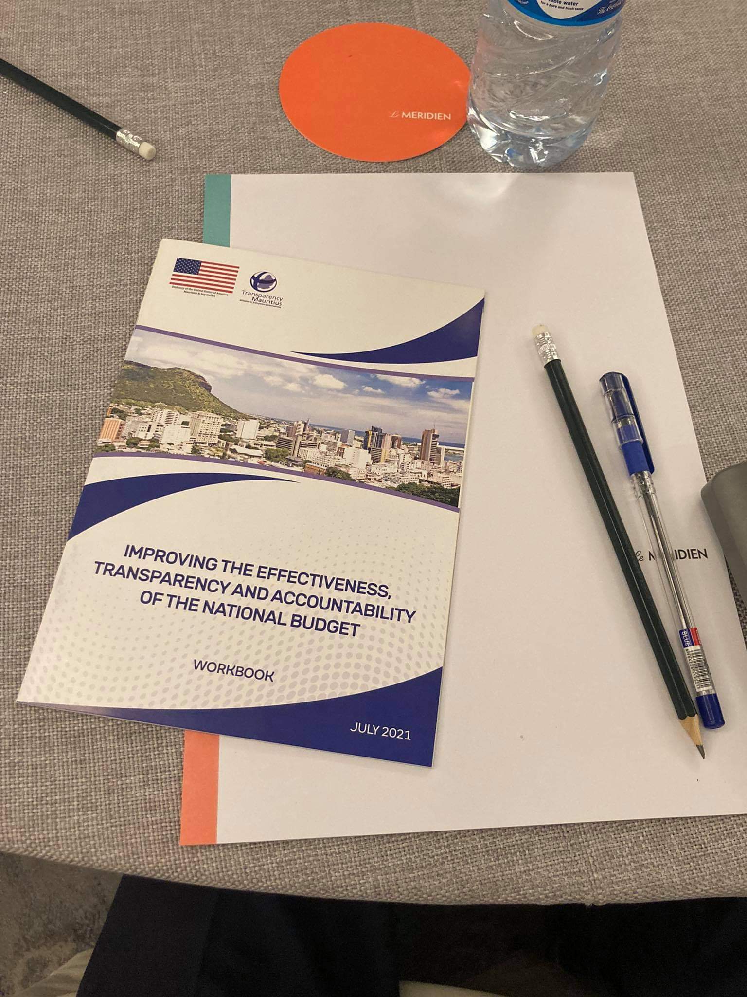 انعقدت ورشة العمل هذه بعد ندوة عبر الإنترنت ودورة تدريبية لمدة ثلاثة أيام التي عقدت في يوليو 2021 حو “تحسين الفعالية والشفافية والمساءلة في الميزانية الوطنية. تم منح الجوائز لأفضل الفرق في نهاية الورشة. عمل كل من الدكتور أشوك أوبيلوك ، المدير السابق للميزانية والشؤون الاقتصادية في وزارة المالية والرئيس السابق للبحوث الاقتصادية في بنك موريشيوس ، وبريندا دابسينغ ، أخصائية أولى في القطاع المالي بالبنك الدولي وعضو مجلس إدارة منظمة الشفافية في موريشيوس ، كموجهين لورشة المحاكاة