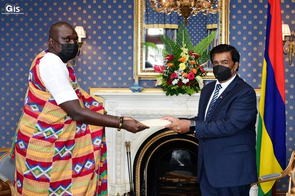 يقدم المفوض السامي الغاني المعين حديثًا أوراق اعتماده إلى الرئيس الموريشيوس السيد روبون